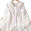 Autumn Women's White Lace Hooded Cardigan - Elegant, Lightweight, and Loose-Fit Sun Protection Top