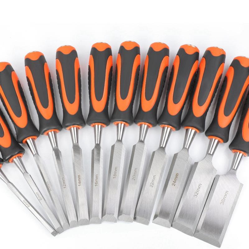 Wood Chisels Sharp Chrome-Vanadium Steel Woodworking Plane Carving Knife Anti-Slip TPR Coated Handle Ergonomic Wood Carving Tool