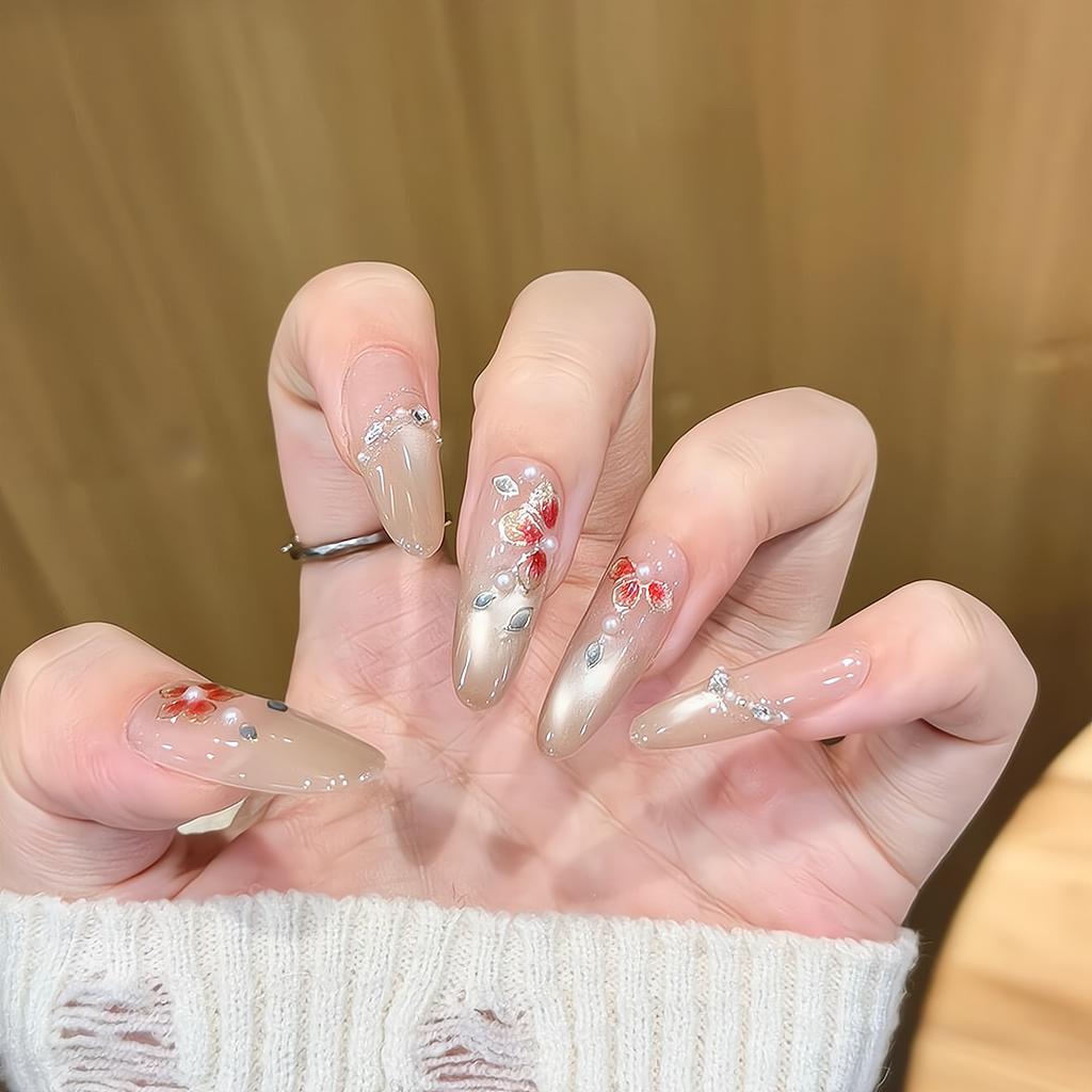 Press On Nails Medium Stiletto Glitter Fake Nails Press Ons with Design Reusable Acrylic False Nail Full Cover Glue On Nail Stick On Nail for Women