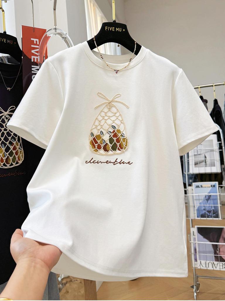 This stylish and comfortable T-shirt is crafted specifically for plus-size women, offering a perfect blend of fashion and function. Made from double-sided velvet and acrylic material, this piece is perfect for those spring and summer days when you need something a little warmer. Despite its short-sleeve design, the heavy-duty fabric provides a cozy feel, making it suitable as temperatures vary. The T-shirt features a round neckline and unique pineapple embroidery along with captivating prints, adding a fun and trendy touch to your wardrobe. Whether you're dressing up for a casual outing or just relaxing at home, this T-shirt delivers both comfort and style.