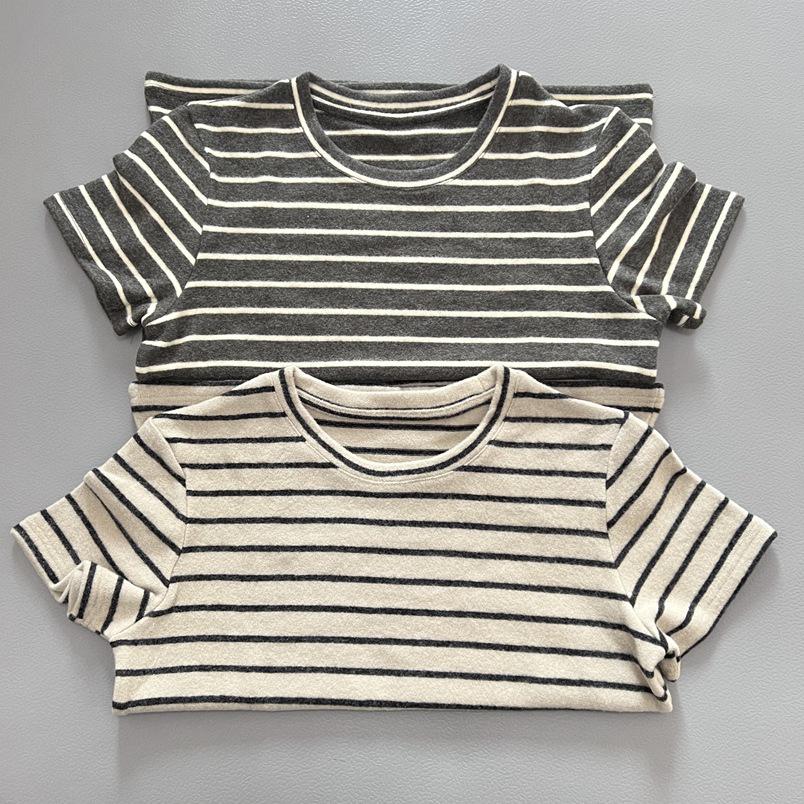 Women's Spring Arrival Velvet Short Sleeve Retro Stripe Loose T-Shirt - Round Neck Casual Versatile and Age-Reducing Top
