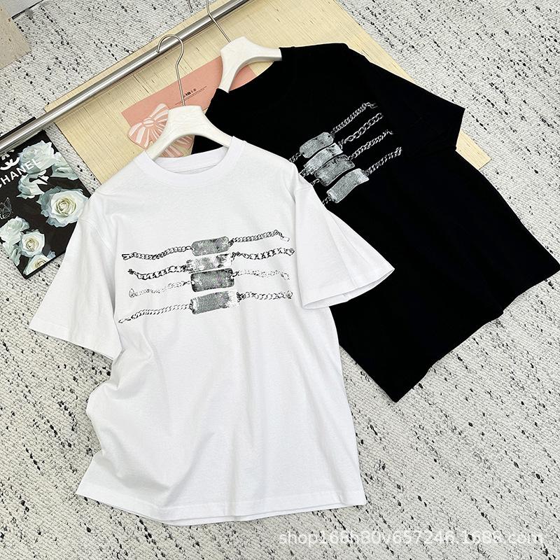 2026 Spring Unisex Cotton T-shirt - Chain Print, Loose Fit, Round Neck, Short Sleeve