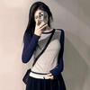 Introducing a sophisticated addition to your autumn and winter wardrobe, this slim-fit women's top is crafted from premium cotton, ensuring both comfort and style. Designed with long sleeves and a round neckline, it offers a chic European aesthetic that effortlessly embodies elegance. The niche contrast design adds a unique touch, making it a versatile piece for various occasions. Perfect for layering or wearing solo, this top seamlessly combines functionality with modern fashion-forward flair.