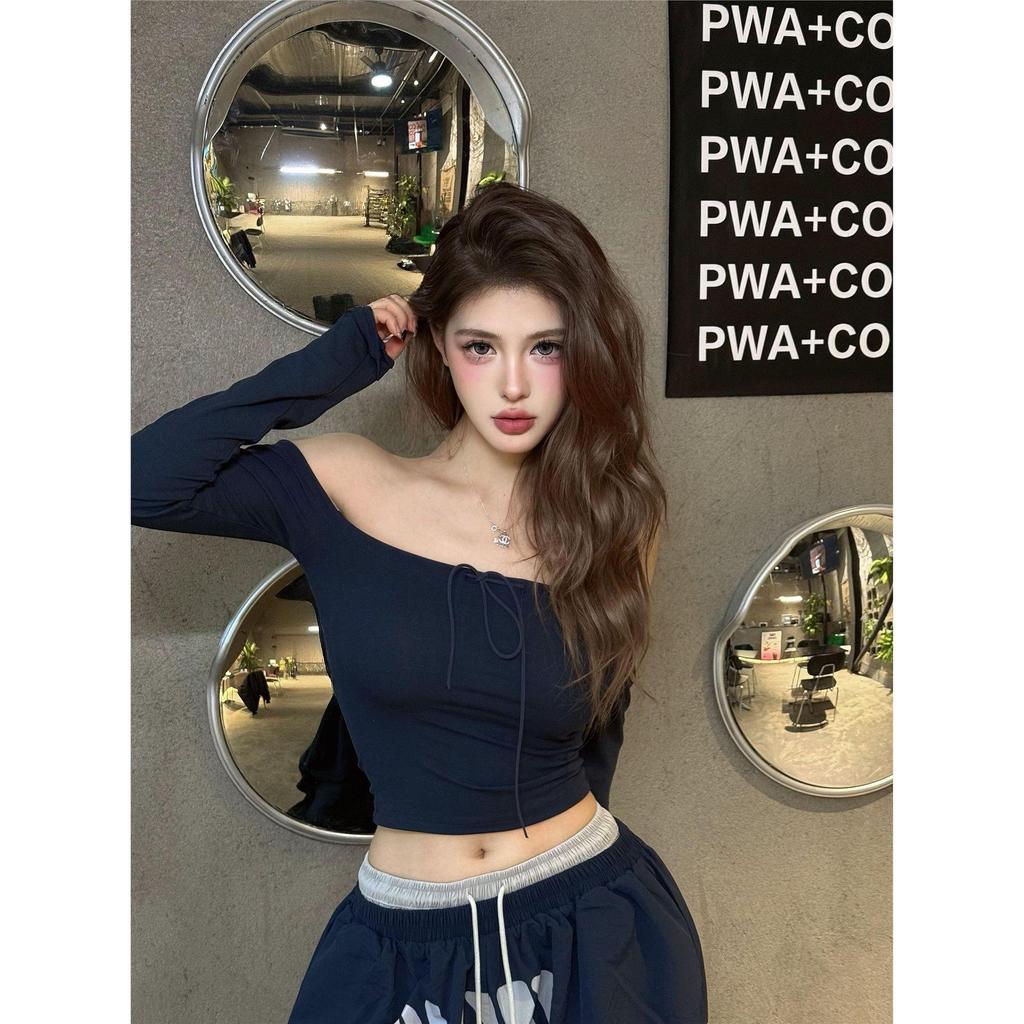 2025 Women's One-Shoulder Long-Sleeve Spicy Girl Style Top – Autumn European/American, Tight Fit, Skin-Brightening