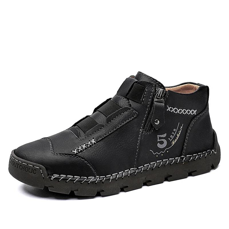 Size 48 New Men's Leather Casual Shoes Korean Edition Trendy Legged Leather Shoes Men's Breathable High Top Outdoor Travel Shoes
