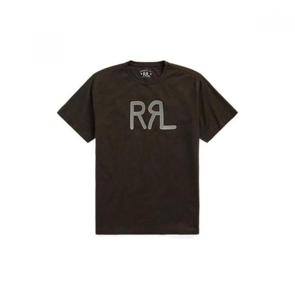 The RRL Logo Jersey T-Shirt is made from lightweight cotton jersey fabric that provides a comfortable fit. It features the DOUBLE RL logo printed on the chest and is designed with a crew neck and short sleeves, making it perfect for summer wear. The color is Faded Black Canvas, which easily matches various styles. This product is machine washable, offering easy maintenance.