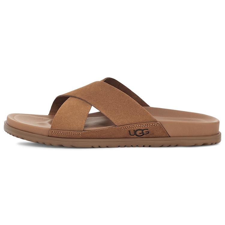 UGG Wainscott Cow Split Leather Slippers Men's Chestnut 1124902-CHE