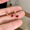 Classics Luxury Round Red Zircon Bead Stud Simple Earrings for Women Fashion Body Piercing Trend Jewelry Accessories Party Gifts