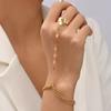Simple Heart Slave Chain Bracelet Gold Plated Link Connected Wide Finger Ring Bracelets Jewelry Gifts For Women Girls