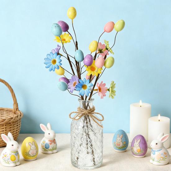 Celebrate Easter and spring with these vibrant easter egg picks, featuring bright, lively colors that perfectly complement festive atmospheres. Crafted with delicate simulated petals and spotted-texture eggs paired with natural dead branches, they offer a realistic look and feel akin to fresh flower arrangements. These picks require no maintenance—no watering or pruning—and maintain their vivid appearance year-round without fading or wilting.