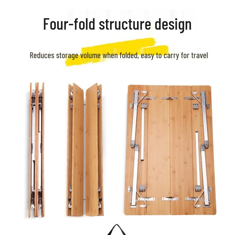 ZISIZ Bamboo Top Height-Adjustable Outdoor Folding Camping Table