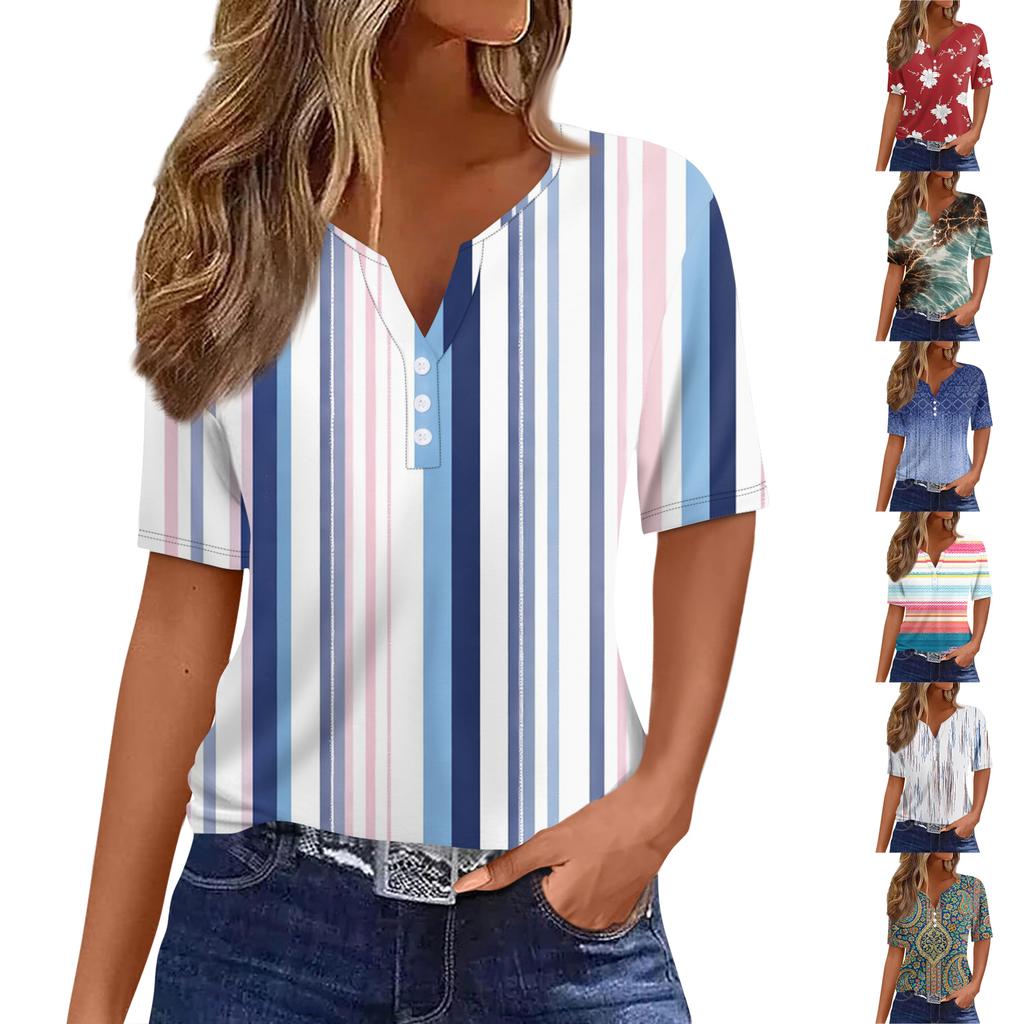Women's T Shirt Tee Printed Button Short Sleeve Tunic Daily Weekend Fashion Basic V- Neck Regular Top