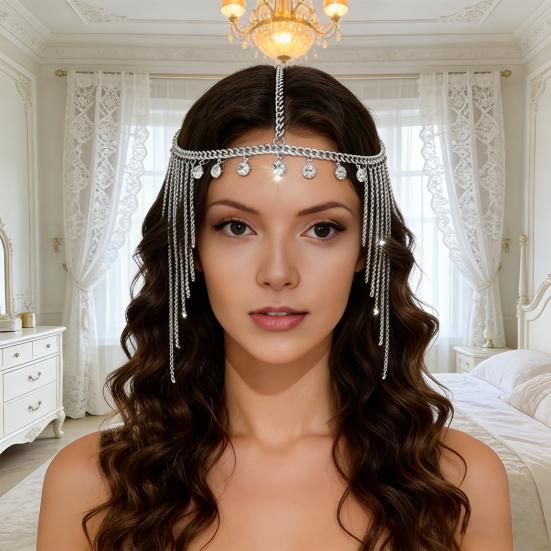 This adjustable women's Indian hair chain fits all head sizes, allowing you to customize it for a perfect fit that complements your hairstyle and outfit. Crafted from high-quality alloy and crystal-clear rhinestones, the multi-layered tiara features securely set stones that won’t fall off, fade, rust, or break, ensuring lasting sparkling.