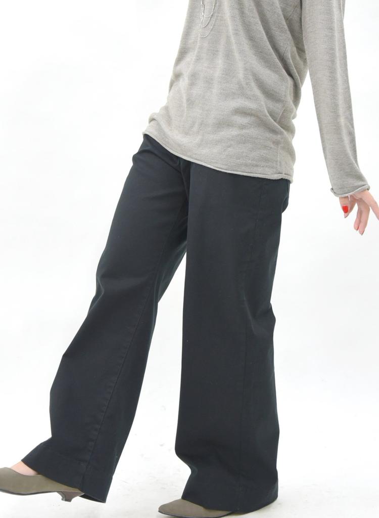 These wide-leg pants have a beautiful, straight silhouette. They have an excellent balance of just the right amount of width and clean lines. The stretchy twill fabric makes them stress-free to wear. ◎ Staff Comment (159 cm) [L] The thighs and hips fit just right, and there's room around the calves. I wore them slightly lower on my hips, and they were long enough to completely cover my ankles. There's also a little room in the waist, making them comfortable.