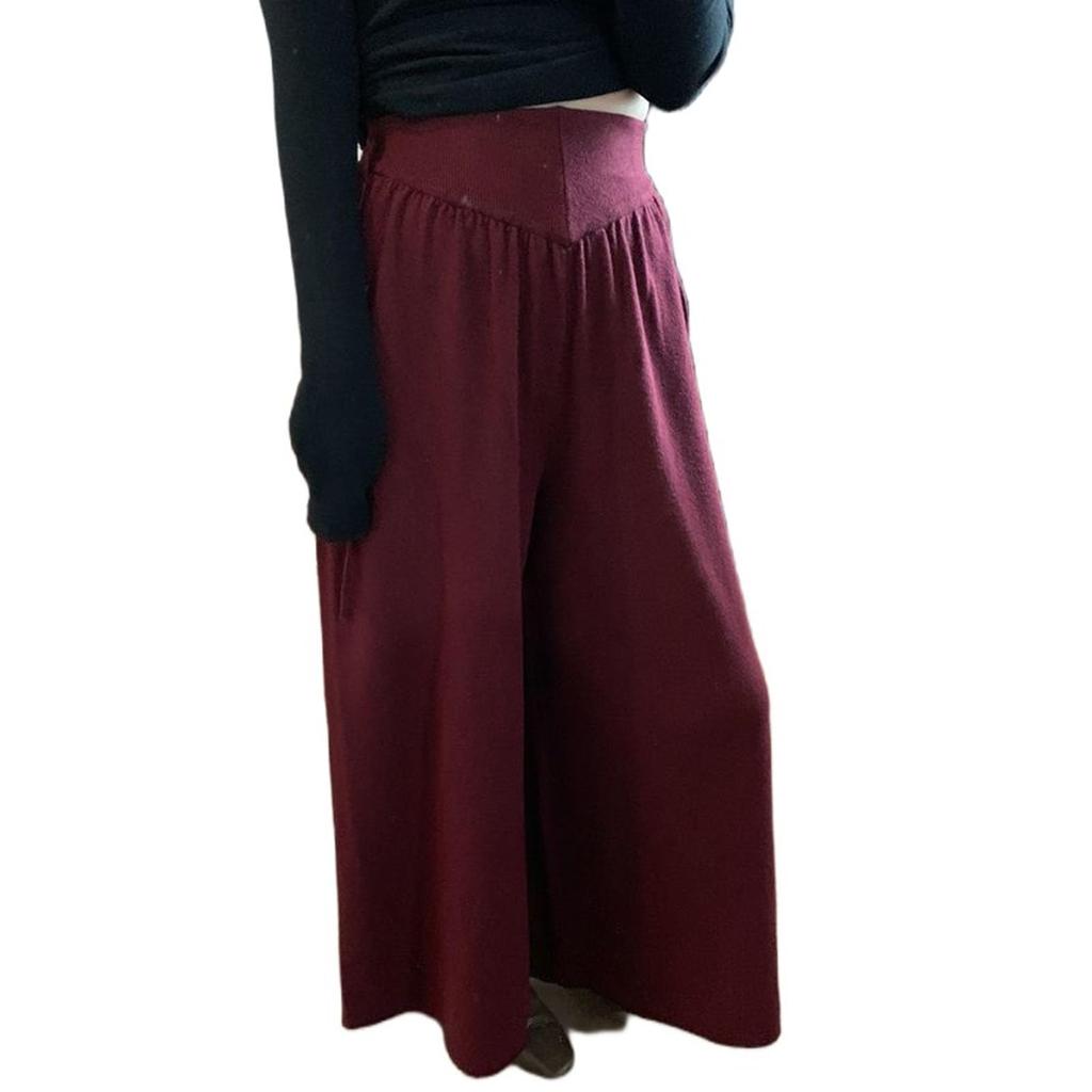 Women's wide-leg knit pants, long, with a relaxed fit, soft ribbon detail, slimming, flattering, and a relaxed fit with an elastic waist. Elegant, simple, and casual, these pants are perfect for work, fall, and winter. Lightweight, smooth, and comfortable to wear, they're perfect for summer, fall, and winter.