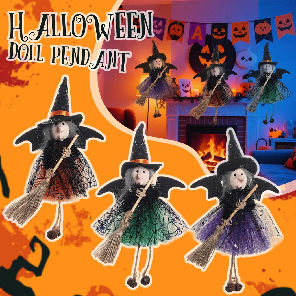 Halloween Witch Hanging Decor Cute Broomstick Ornament Party Hanging Witch Decoration Witch Doll with Bells Halloween Gift