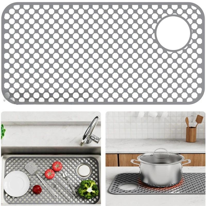 Sink Protectors for Kitchen Sink-28.4"x 14.3"Sink Mat- Heat-resistant Easy-clean Silicone Sink Mat for Stainless Steel Sink