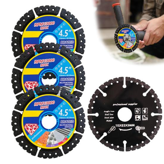 This saw blade features a sturdy welded construction combining steel and diamond sand, ensuring durable cutting performance for frequent use. With precise dimensions115mm outer diameter and 22.23mm inner diameterit fits common cutting tools securely, providing stability during operation.