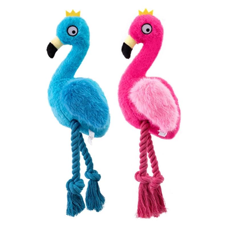 Interactive Flamingo Dog Chewing Toy Plush Cotton Rope Teeth Clean Squeaky Toy for Small To Large Breeds Entertainment
