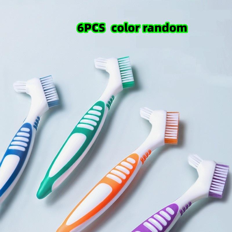 6-Pack of Double-Sided Toothbrushes with Random Colors, Large Brush Head, Denture Toothbrush, Cleaning Brush, Double-Sided Denture Brush, Invisible Br