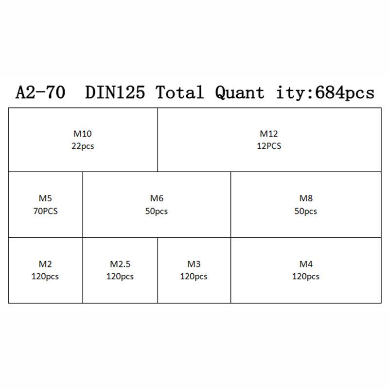 684-Piece Stainless Steel Flat Washer Set - M2 To M12 Sizes
