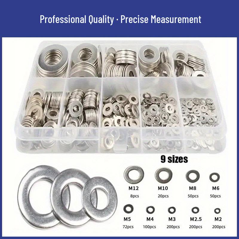 900-Piece 304 Stainless Steel Flat Washer Set M2-M12
