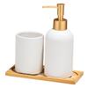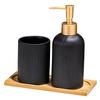 3PCS Ceramic Liquid Soap Dispenser with Storage Wood Tray Toothbrush Cup for Household Bathroom Organizing Essential