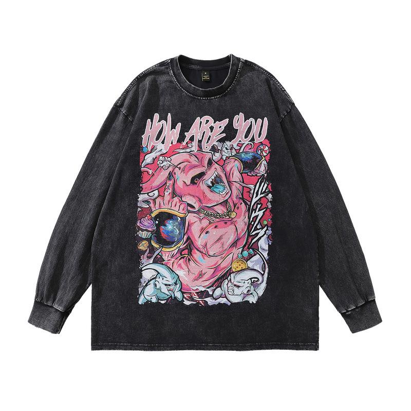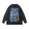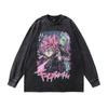 Heavy Cotton Men'S Top American Street Tide Cartoon Printing Washed Long-Sleeved T-Shirt Men And Women