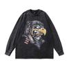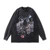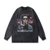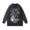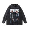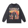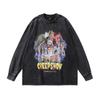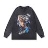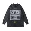 American High Street Retro Long-Sleeved T-Shirt White Ink Direct Spray Print Heavy Cotton Washed Crew Neck Sweatshirt Men'S Ins