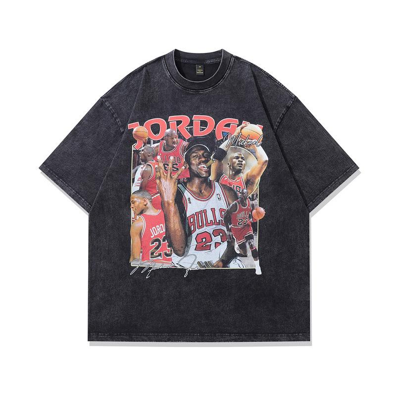 Men'S Clothing American High Street Trendy Brand Vintage T-Shirt Retro Portrait Printing Washed Loose Cotton Short-Sleeved T-Shirt Men