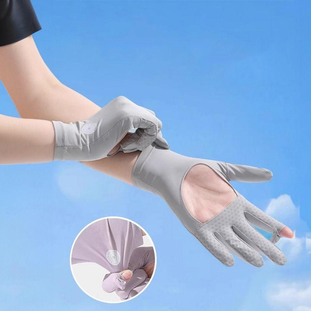 1 Pair Anti-UV Thin Sunscreen Gloves Ice Silk Cycling Driving Gloves Riding Driving
