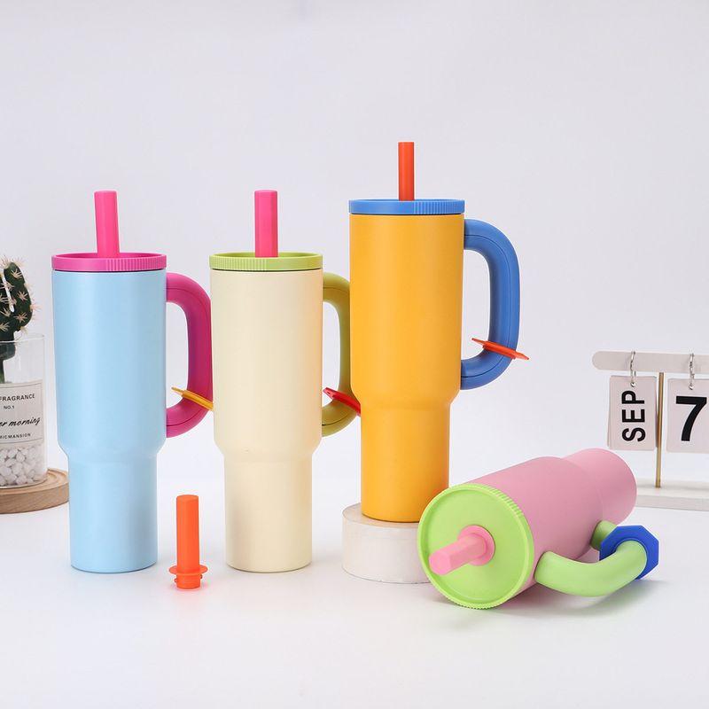 Cross-Border 304 Stainless Steel Handle Car Cup Double-Layer Vacuum Large Capacity Vacuum Cup Macaron Color Ice Cream Cup