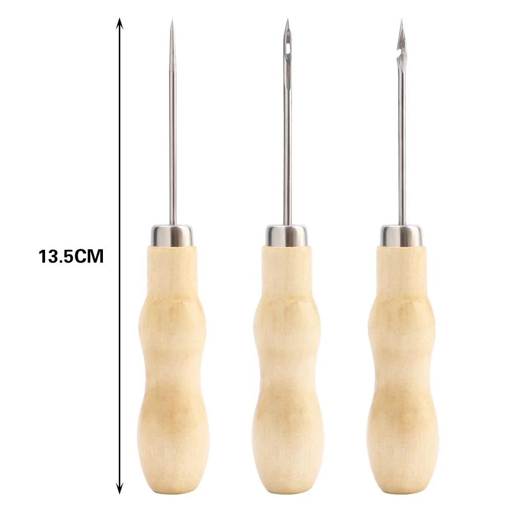 Wood-Handled Metal Tip Hand-Pierce Shoe Cone Needles with Hook Heavy-Duty Handheld Punch Tool for Leather Crafting,Shoe Repair