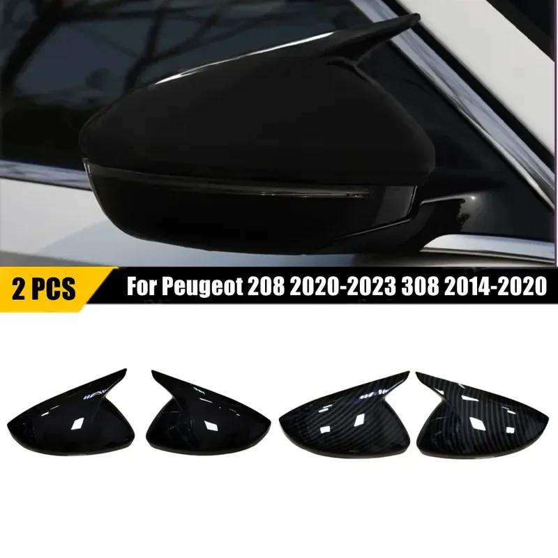 For Peugeot 208 ABS Car Rearview Side Mirror Cover Wing Cap Exterior Door Housing Trim Adhesive Sticker