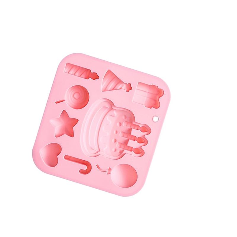 Featuring diverse themed designs like candle, balloons, and cakes, this silicone baking mold adds playful creativity to desserts with easy demolding and smooth surfaces for quick cleaning.
