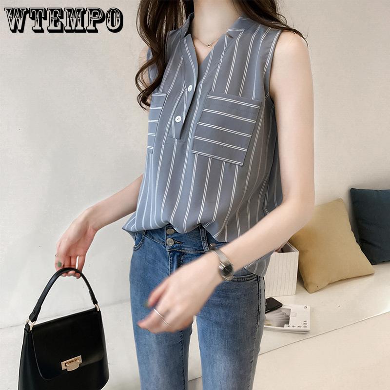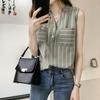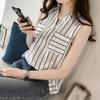 Women's V-neck Striped Shirt Women's Sleeveless Top Loose Slimming Chiffon Shirt Plus Size