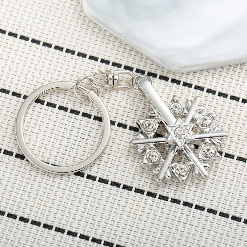 Rotating Rhinestone Snowflake Stainless Steel Keychain Shiny Fashion Design Practical Student Backpack Gift