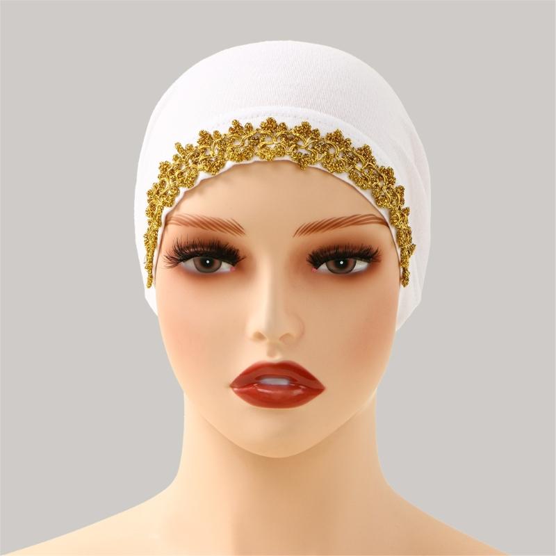 Elegant Lace Trim Hijab Cap Easy To Wear Stretchy Turban Hat For Islamic Women Formal Casual Religious Event Gathering