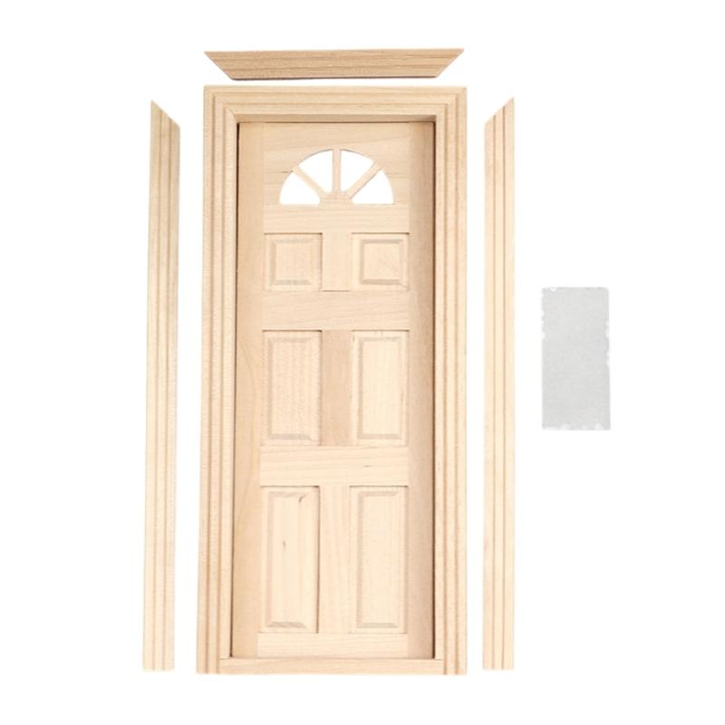 Rural Farmhouse Styles Unpainted Wood Door with Semicircular Sun Window for 1/12 Scale Doll House Scene Arrangement