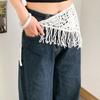 Bohemian Knitted Butt Flap Hollowing Out Tassel Hip Apron Triangular Scarf Tie Straps Women Girls
