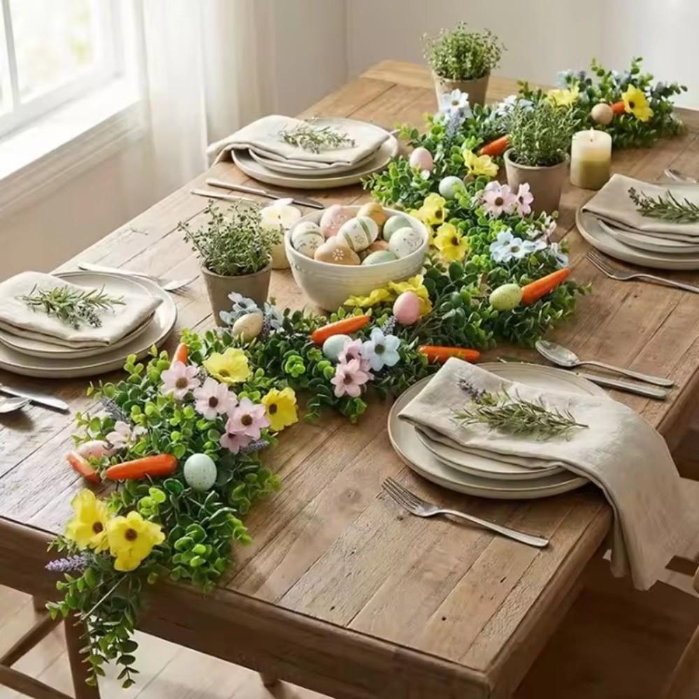 With Egg Carrot Easter Egg Garland Multi Colored Wreath Spring Vine Flower Easter Decoration