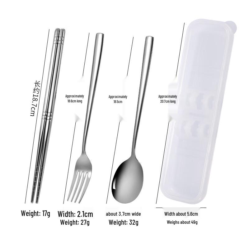 Portable Stainless Steel 3-Piece Cutlery Set with Transparent Case