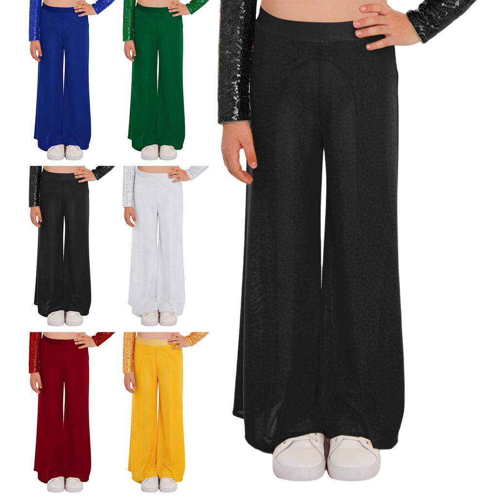 Girls Lyrical Dance Mesh Pants: Elastic Waistband Wide-Leg Design with Built-In Briefs for Performance Competition