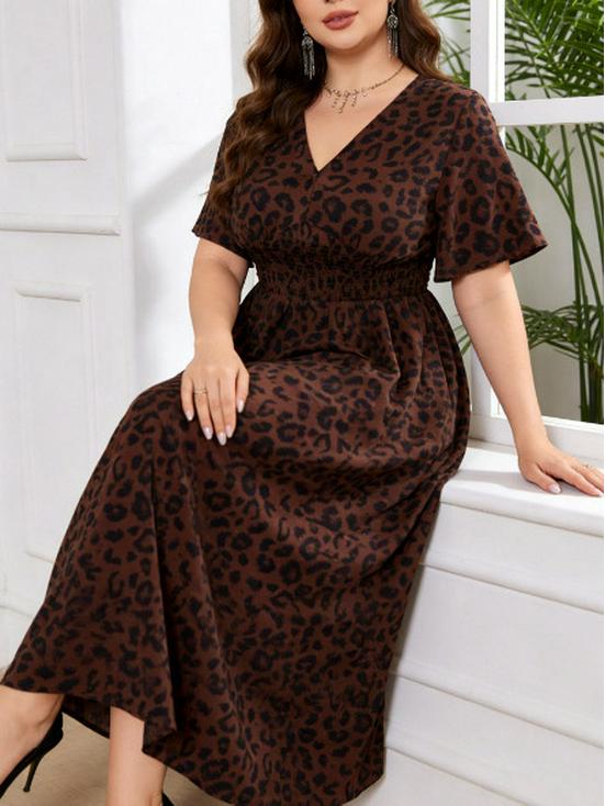 Elegant Plus Size Leopard Print Maxi Dress - Middle East Style