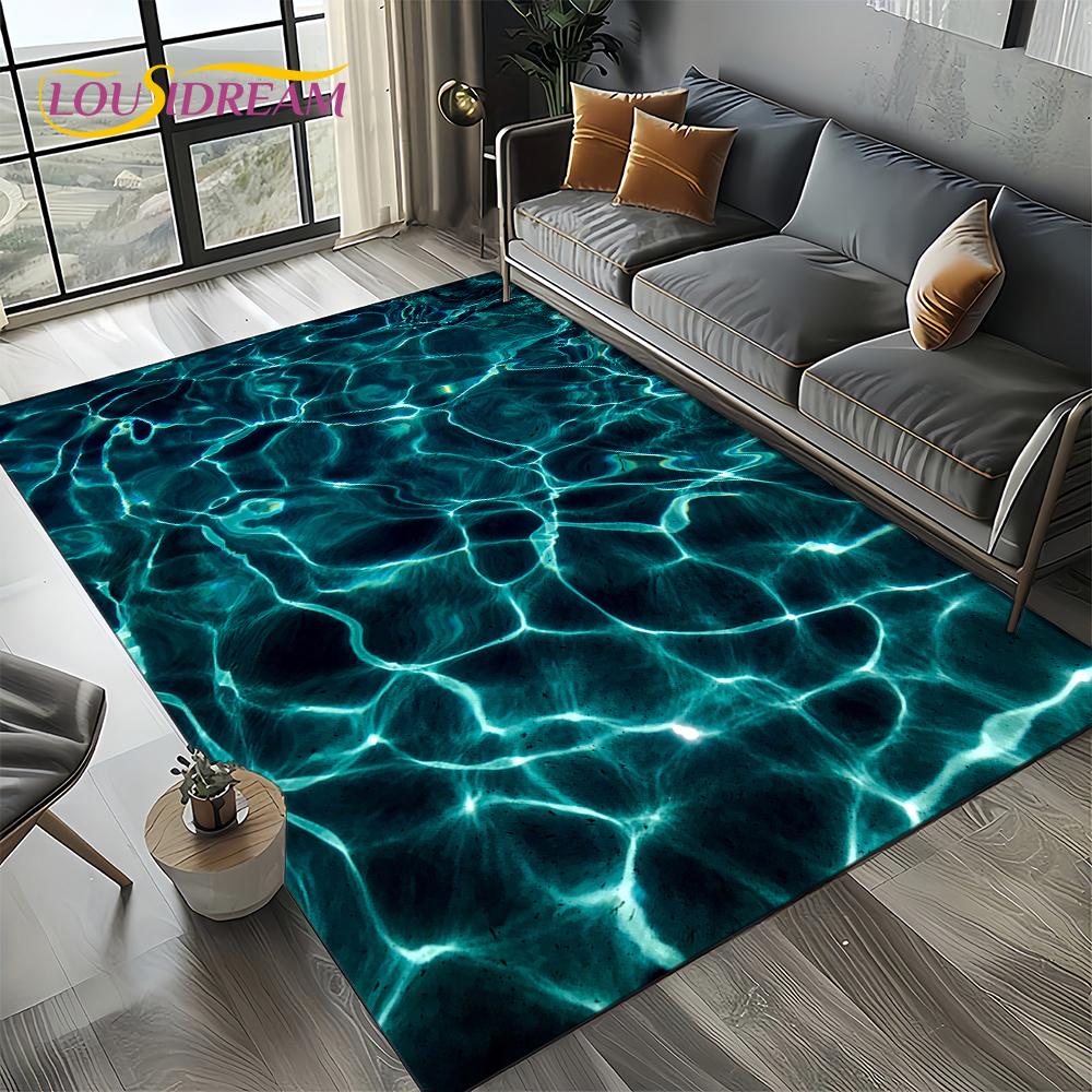 2025 New Style Blue Green Seawater Sea Wave Scenery Carpet Rug for Living Room Bedroom Home Sofa Decoration,Non-slip Floor Mat