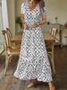Elevate your wardrobe with this stunning dress, perfect for the 2023 Autumn/Winter season. Crafted from luxurious artificial silk material, it offers a beautiful drape and a comfortable fit. The dress features a flattering V-neckline and mid-length sleeves, adding a touch of elegance to any casual occasion. Its eye-catching floral pattern enhances its sophistication, making it a versatile and stylish addition to your collection. Ideal for both European and American styles, this dress is a must-have for any fashion-forward individual.