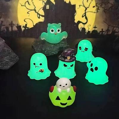 6Pcs Luminous Mini Resin Ghost Figurines Glowing Halloween Ornaments Small Ghost Micro Miniature Statue for Outdoor House Landscape Party