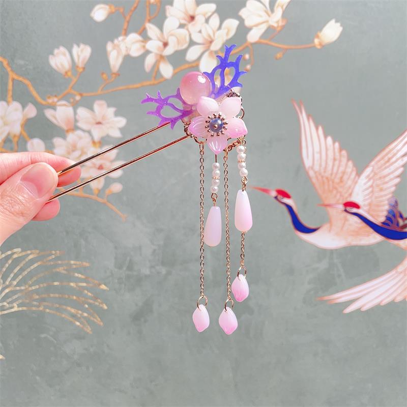 Children's New Style Hanfu Hairpin Step Shake Fringe Princess Hairpin Hair Adornment Girl's Ancient Costume Headwear