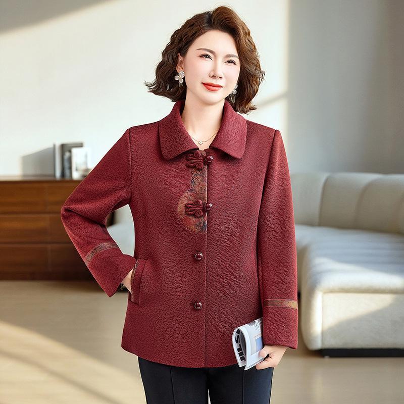 Spring Arrival: Chinese Style Embroidered Woolen Coat for Middle-Aged & Elderly Women - Loose, Stylish Cardigan