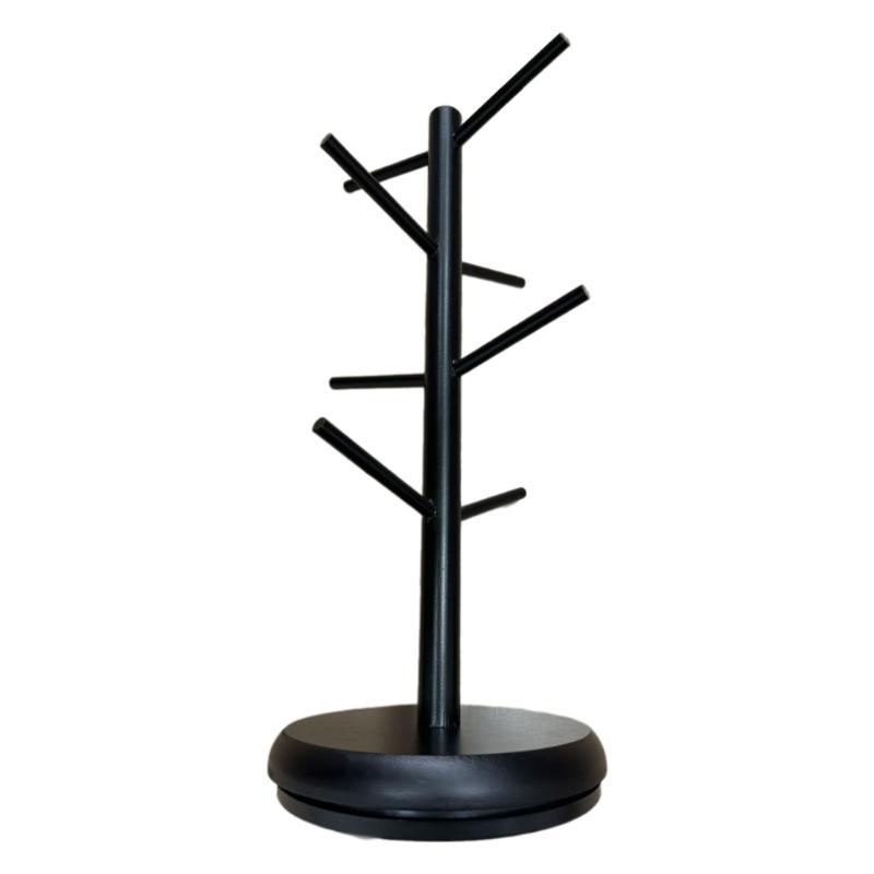 Modern Black Bamboo Mugs Tree Stand With 8 Hanging Hook, Space Saving Coffee Cup Organizers